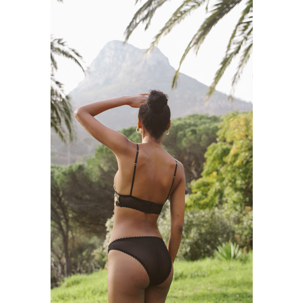 Bernie is made from a soft cotton base with a beautiful floral embroidered panel. A high leg cut for a flattering fit and adorned with Nette Rose signature tag.