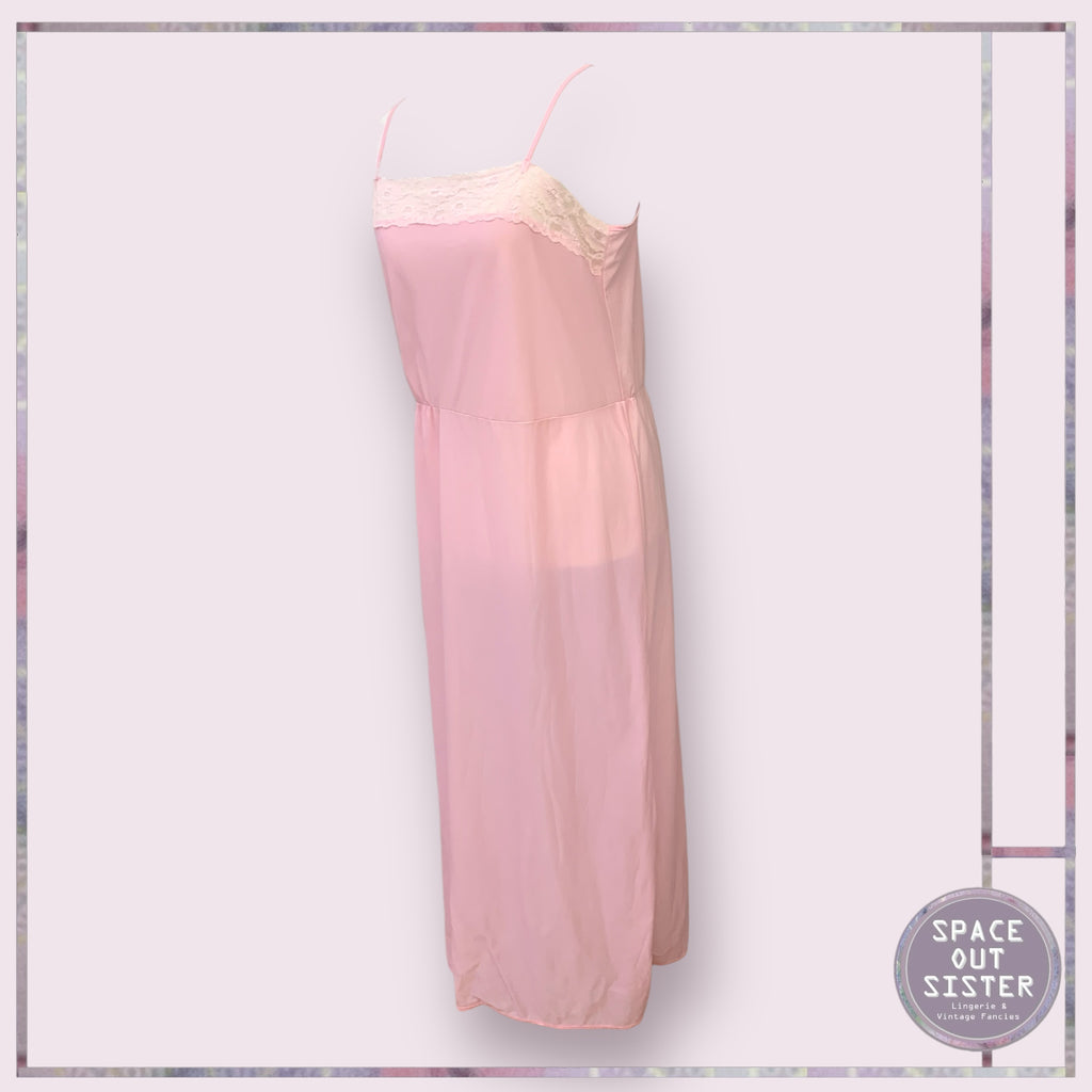 Snuggle up in this candy floss pink Vintage Full Length Lace Nightdress that’s sweeter than a sugar rush! With a lace neckline that says “I woke up like this” (who needs a beauty routine anyway?), it’s perfect for those cozy nights.