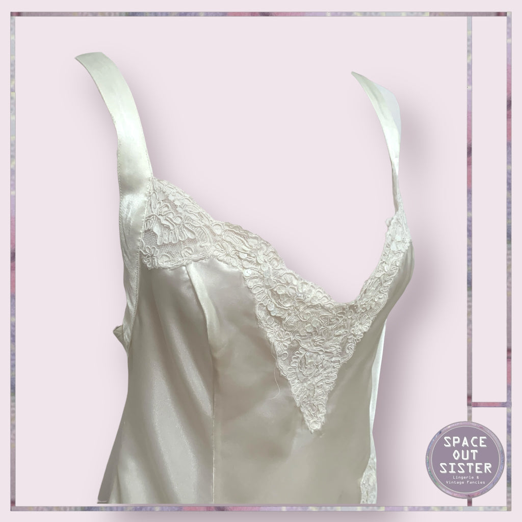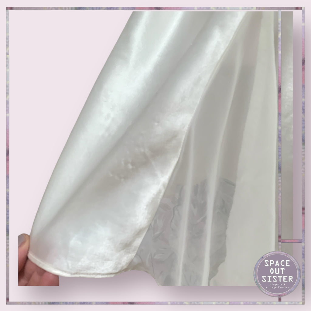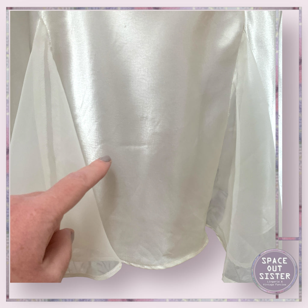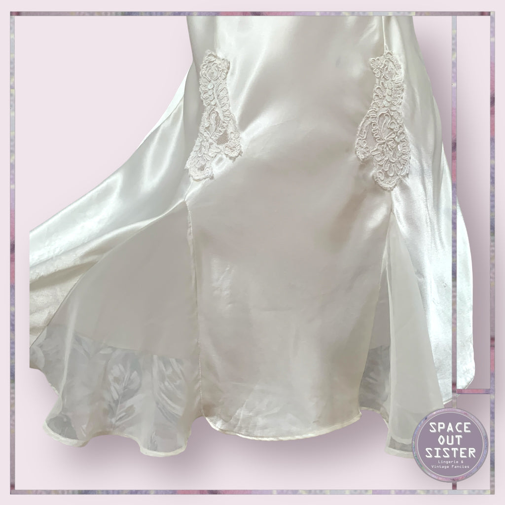 This stunning ivory Victoria's Secret Nightdress boasts chic and stylish design. Adorned with beautiful sequins along the neckline, this nightdress exudes elegance. Its wide satin straps and pretty georgette inserts on the satin skirt add a touch of luxury to the piece. Perfect for a glamorous night's sleep. As presented, please see last photos.