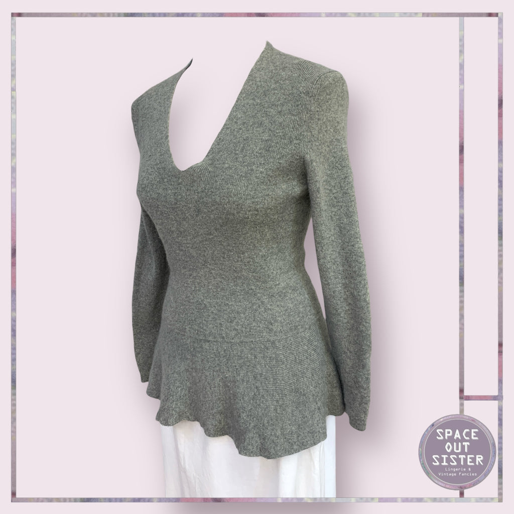 Expertly crafted with a beautiful grey hue, this pre-loved Banana Republic jumper is a must-have. The luxuriously soft fabric features 5% cashmere for added comfort and warmth. The elegant peplum style adds a touch of sophistication to any outfit.