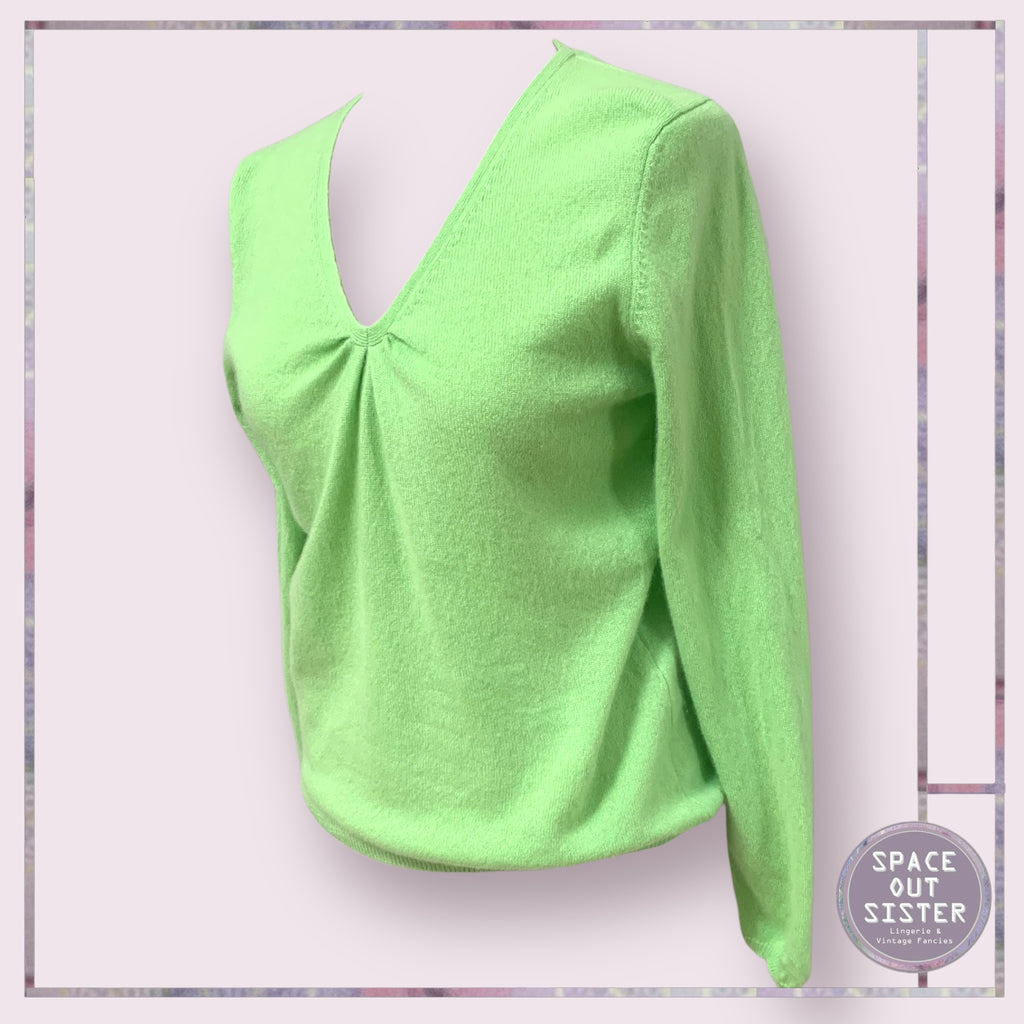 Elevate your style with this Pre-Loved Talbots Green Cashmere jumper. Made with luxurious cashmere, this smart jumper in bright green from Talbots is a must-have for any fashion forward individual. Stay comfortable and chic with this versatile piece that will elevate any outfit. Excellently presented.