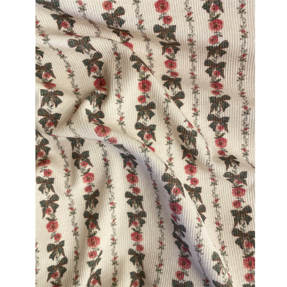 Meet your new favorite bottoms! These adorable high-waisted flare pants feature a flattering silhouette that elongates your legs while the soft modal and spandex rib blend keeps you comfy all day. The standout detail? Kilo Brava exclusive Heirloom Rose print—a charming ditsy floral design with delicate roses and bows arranged in a striped pattern that's totally swoon-worthy. Perfect for adding a touch of whimsy to any outfit, whether you're dressing up or keeping it casual.
