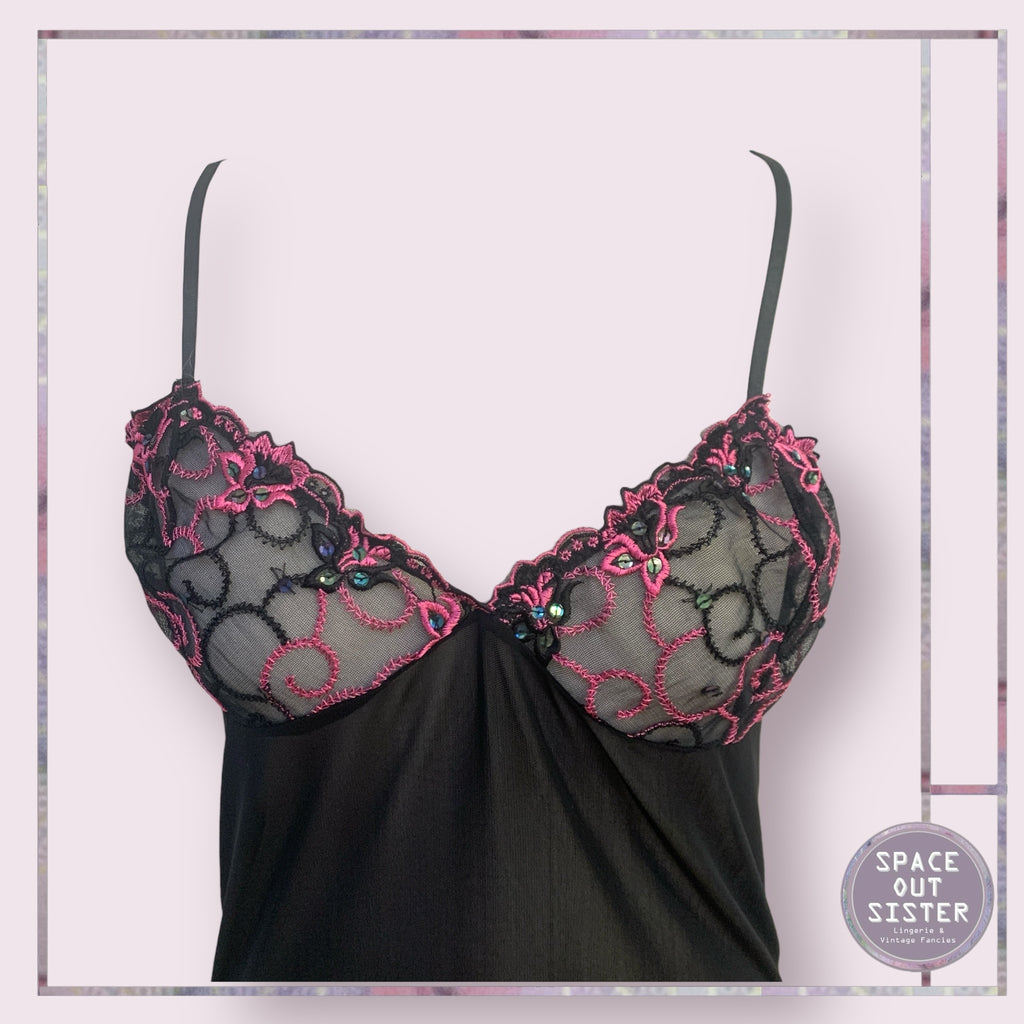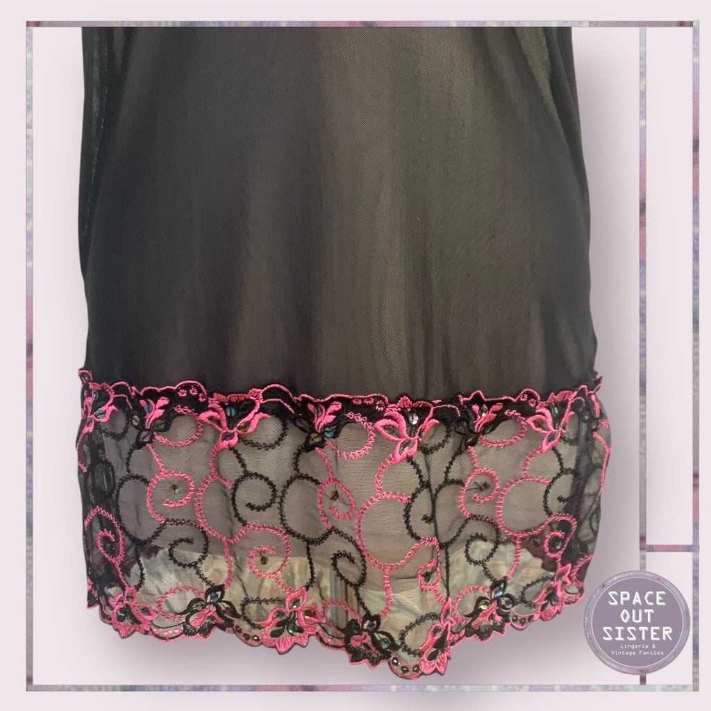 Slip into the Vintage Evie Nightdress and let your dreams take a stylish spin! This cute black beauty features a cheeky semi-sheer design with playful pink detailing (because who doesn’t love a pop of color?). Perfect for those nights when you want to feel fab while snoozing!