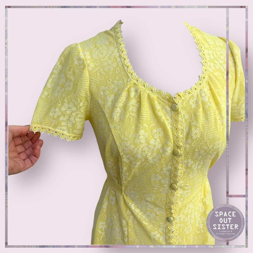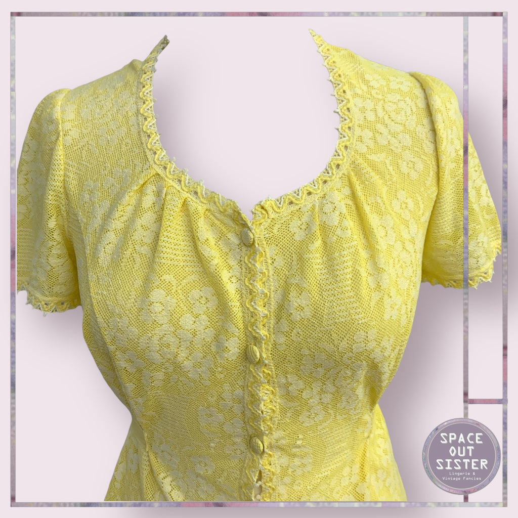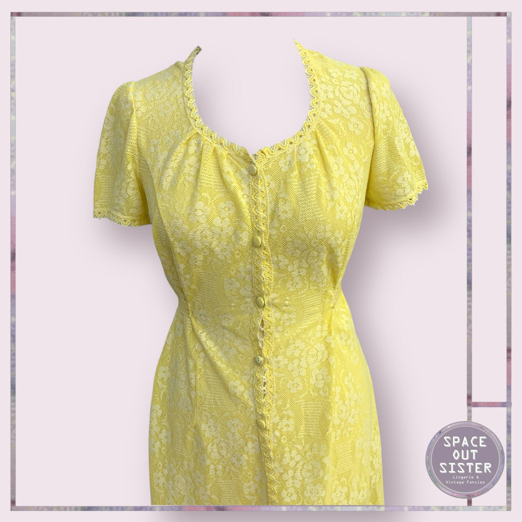 This beautiful cotton nightdress by Hanro is simply gorgeous! Its vintage design features a button front and tied back for a comfortable fit. Enjoy a good night's sleep in style with the lemon colored nightdress. Crafted from high-quality cotton, it offers both comfort and elegance.