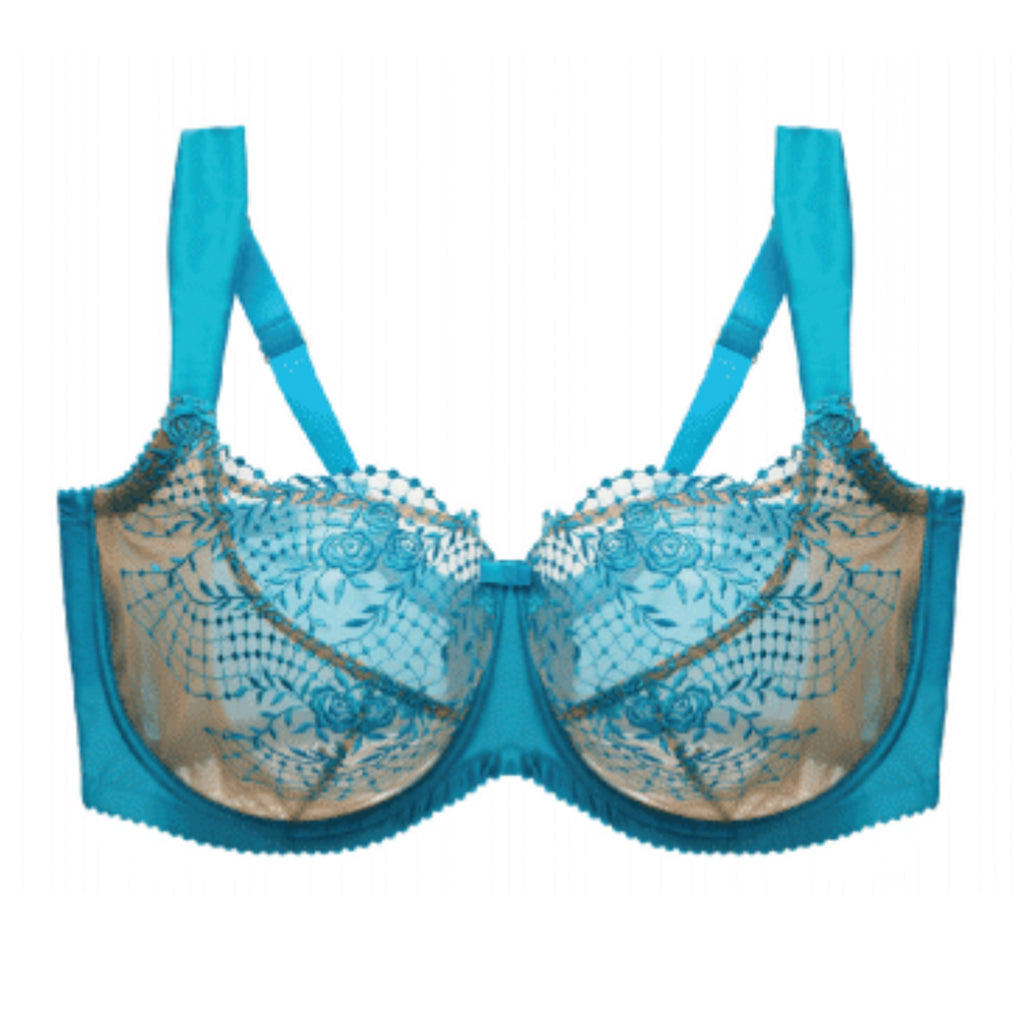 Julie's Roses Full Figure underwire bra is designed to give elegant support. The bra features a rose embroidery over sheer mesh with satin cups, additional lift and support from the concealed tulle sling inside the cups and wide satin straps for extra support. A truly beautiful bra for Dita's curvy customers.