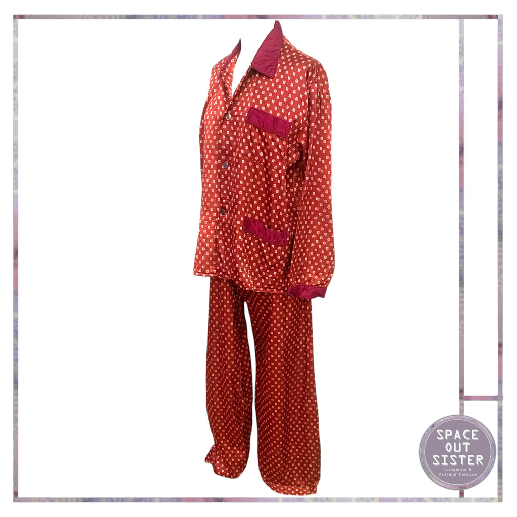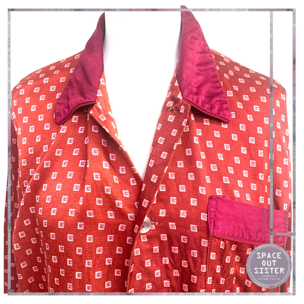 Step back in time with these gorgeous Vintage Red & Pink PJs. This well-presented Pyjama set features a vibrant red color with a playful pink G graphic. Experience the comfortable, classic feel of vintage fashion while looking effortlessly stylish. Perfect for a cozy night in.